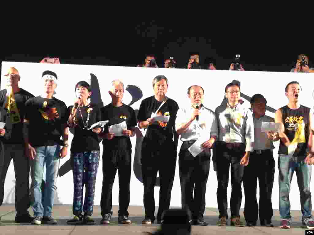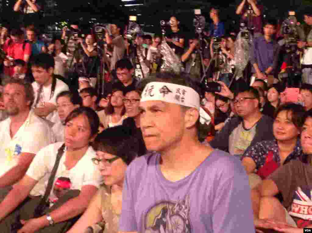 在香港泛民和占中运动在特区政府总部外的添马公园举行的有近万人集会后,数以百计的学生和市民游行前往人大常委会副秘书长李飞下榻的湾仔君悦酒店,要求与李飞对话,抗议人大常委会对香港政改全面落闸......以下是美国之音记者海彦从现场拍摄的照片。