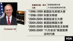 希尔大使:我并不认为我们错失了解决朝鲜问题的良机。在那段时间内我们做了很多的努力,和其他的伙伴一起努力。当然,我觉得当时没有取得很大的进展,比如同中国的合作,或者解决中国对于美国政策的关切,但是,我也不怪奥巴马政府。如果把耐心作为一种政策,我觉得这也不合适。如果你作为家长,你有耐心是很好的,但是作为一个国家来说,特别是来应对朝鲜这种想要发展核武的国家来说,耐心是不合适的。虽然那段时间没有什么谈判的进展,但是我也不认为那时侯有什么很好的机会,而奥巴马政府错失良机,我并不这么认为。